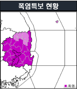 ▶ 폭염주의보 : 경상북도(영주, 영양 평지, 봉화 평지, 경북 북동 산지), 울릉도·독도