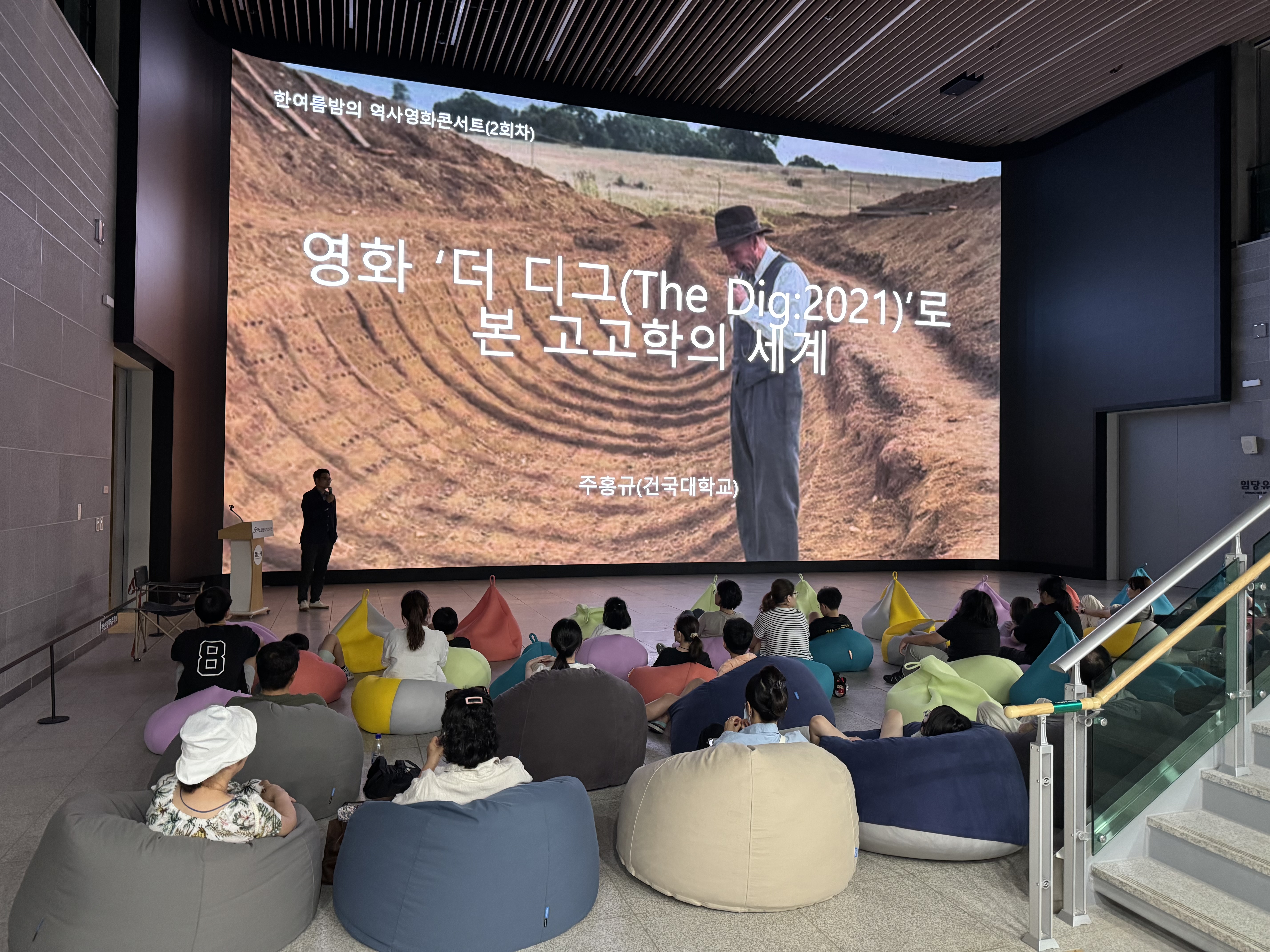 '한여름 밤의 역사영화 콘서트'는 무더운 여름밤 임당유적전시관 중앙로비에서 가족들이 모여 전문가의 해설을 들으며 편안하게 역사영화를 즐기는 프로그램입니다.