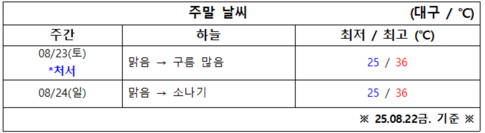 8월 4주 차 대구·경북 주말 ‘날씨 체크’