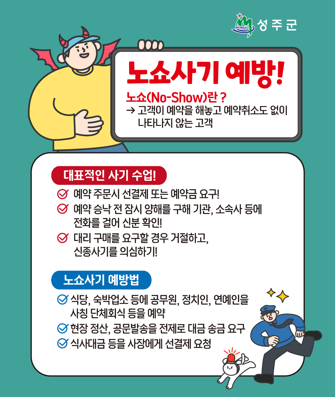 성주군은 홈페이지와 SNS 등에도 예약 부도 예방 홍보 안내문을 올리고, 의심 사례가 발생하면 즉시 경찰에 신고해 달라고 부탁했습니다.