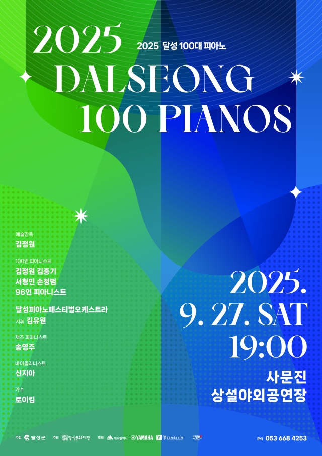 대구 '달성 100대 피아노'가 오는 9월 27일 토요일 저녁 7시 사문진 상설 야외공연장에서 열립니다.