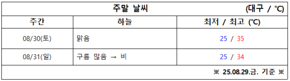 8월 5주 차 대구·경북 주말 ‘날씨 체크’