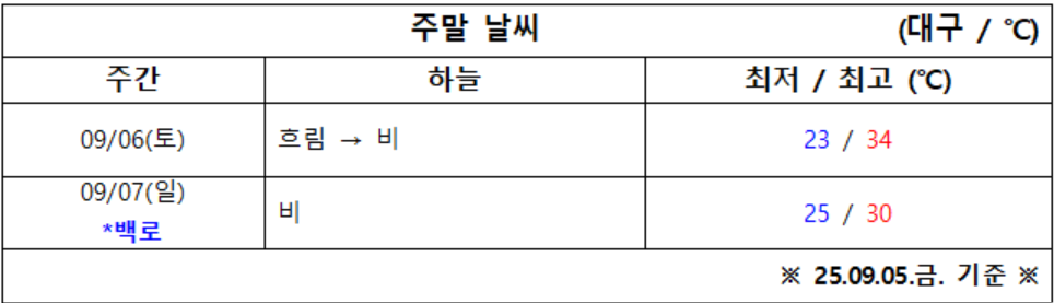 9월 1주 차 대구·경북 주말 ‘날씨 체크’