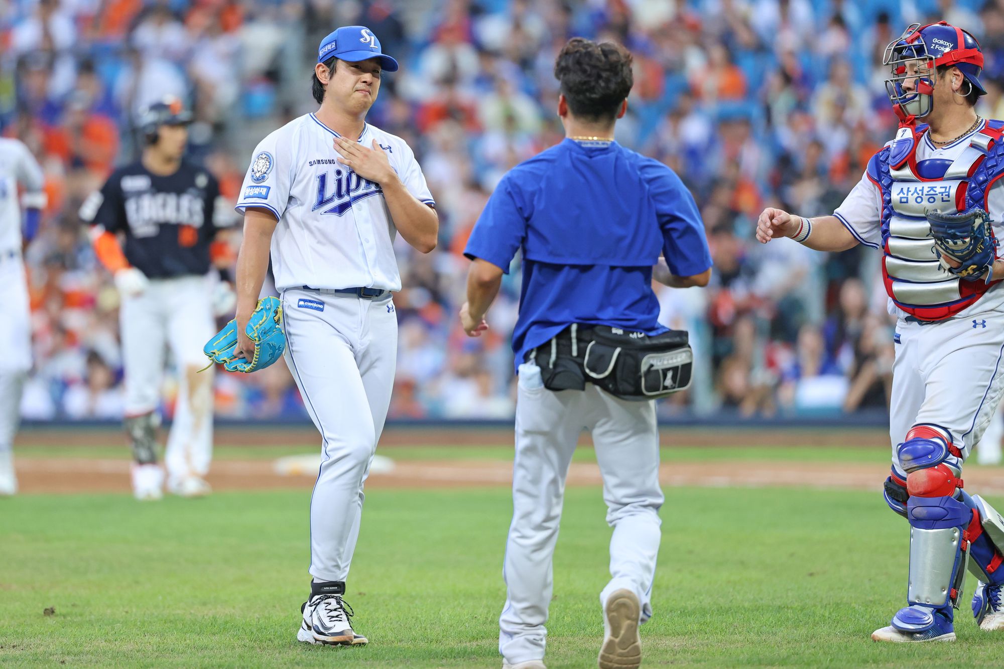 문동주에게 몇 차례 더 안타를 뽑았지만, 점수로 연결하지 못한 삼성은 3회와 4회 모두 병살타를 유도한 양창섭의 호투로 안정을 찾았지만, 4회 2아웃 이후 나온 하주석이 날린 강한 타구가 양창섭의 쇄골 부위에 맞으며 경기 흐름이 다시 묘해졌습니다.