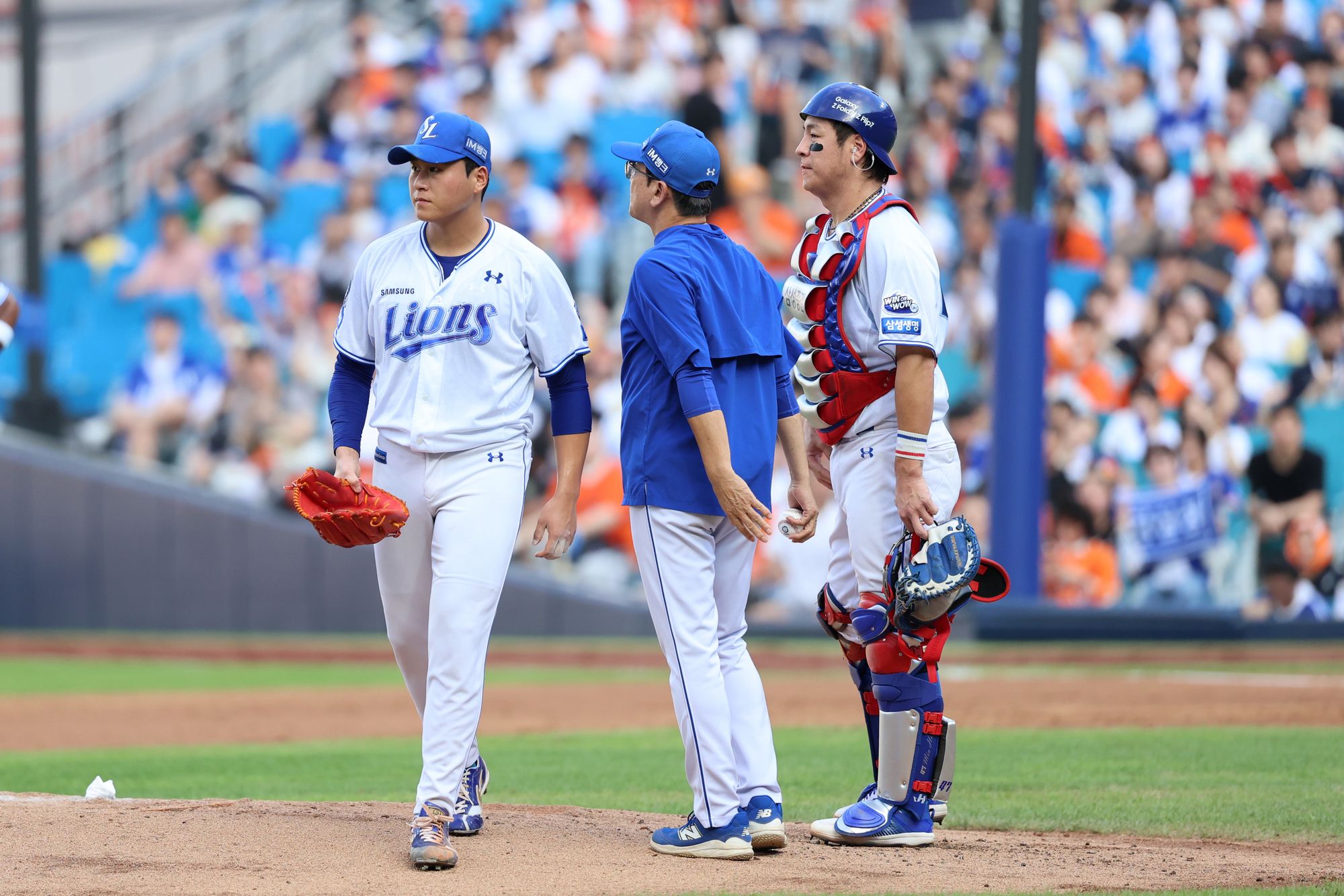 볼넷과 연속 안타로 무너진 이승현은 병살로 이닝 종료에 한 발 더 다가섰지만, 다시 볼넷을 내주며 결국 2회도 채우지 못하고 마운드를 내려갔습니다.