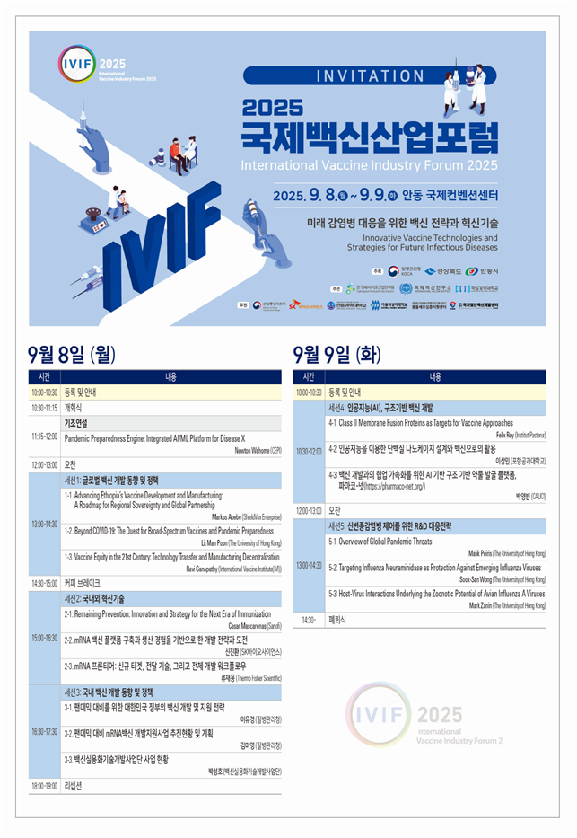 이번 포럼에는 국내외 바이오·백신 기업과 연구 기관이 참석해 글로벌 백신 산업의 전망과 최신 기술 동향을 공유합니다.
