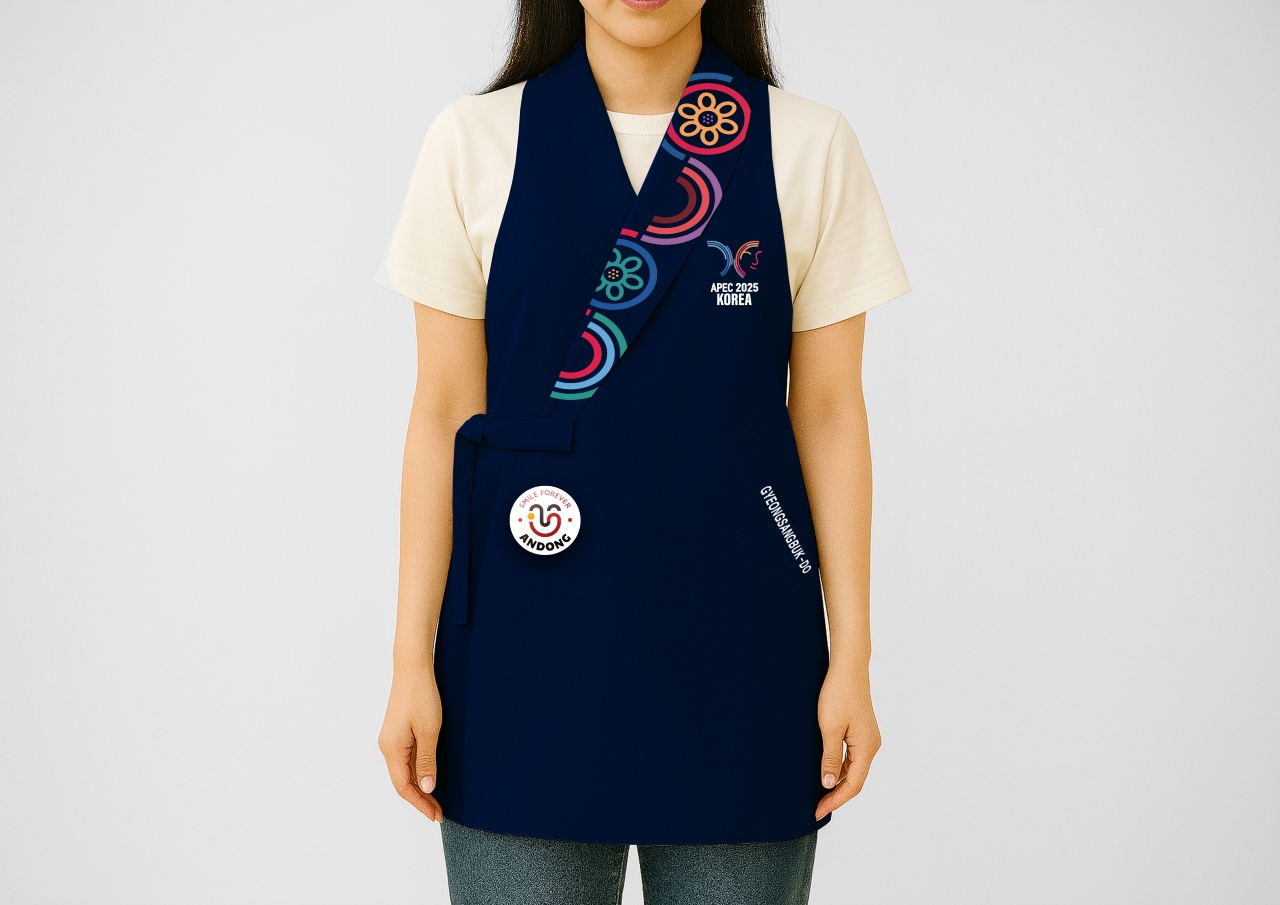 이번에 개발한 위생복은 경북 22개 시군의 정체성과 APEC 정상회의 상징성을 반영했다고 밝혔습니다.
