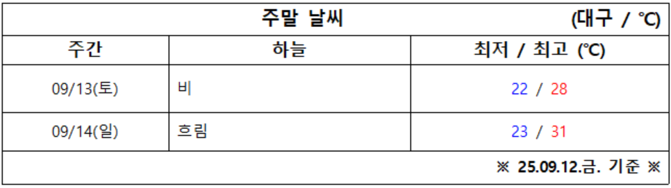 9월 2주 차 대구·경북 주말 ‘날씨 체크’