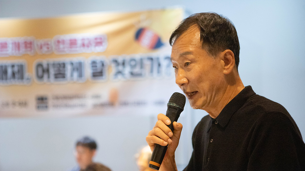 '자유언론실천재단', '새언론포럼', '언론시국회의', '언론개혁정책집단 세움'이 지난 11일 공동으로 주최한 토론회는 민주당의 '속도전'에 대한 강한 비판이 주를 이뤘습니다.