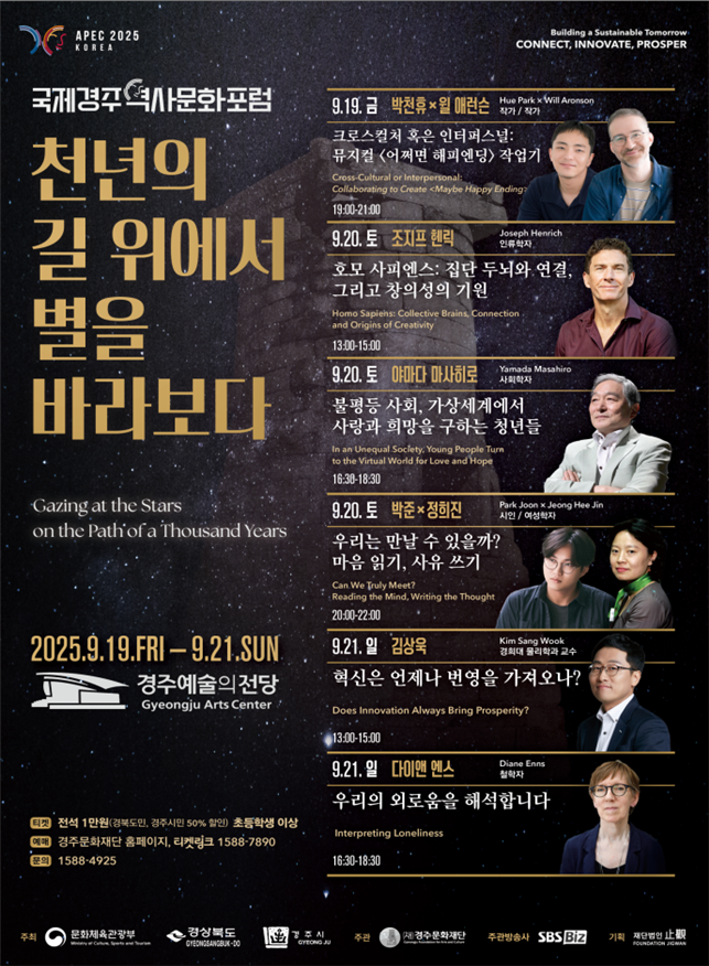 APEC 정상회의를 앞두고 9월 19일부터 21일까지 3일간 경주 예술의전당에서 '2025 국제 경주 역사 문화포럼'이 열립니다.