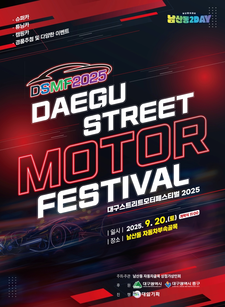 9월 20일 대구 중구 남산동 자동차부속골목 일대에서 2025 대구 스트리트 모터페스티벌이 열립니다.