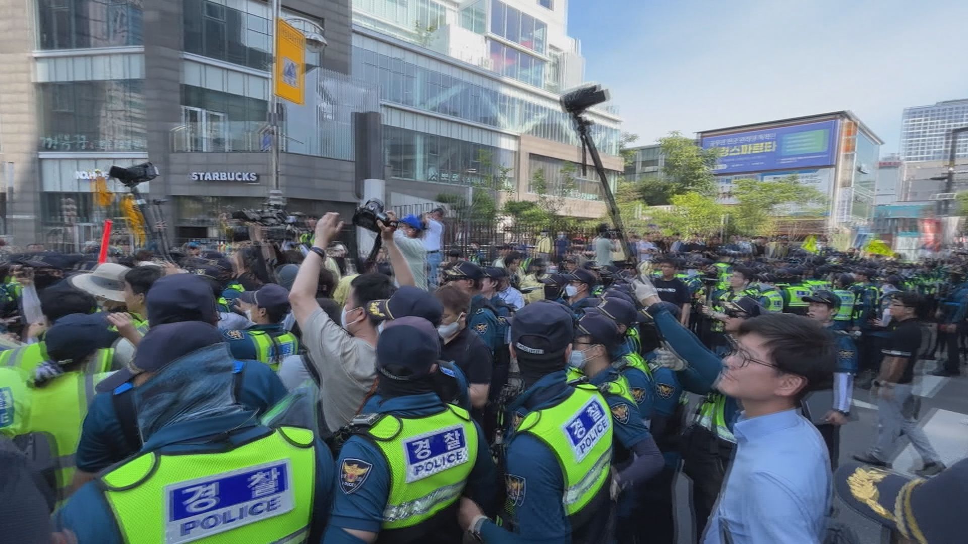 공권력 충돌 다음 해인 2024년은 경찰이 2개 차로 가운데 1개 차로에서만 행사를 하라며 차로 제한을 했습니다.