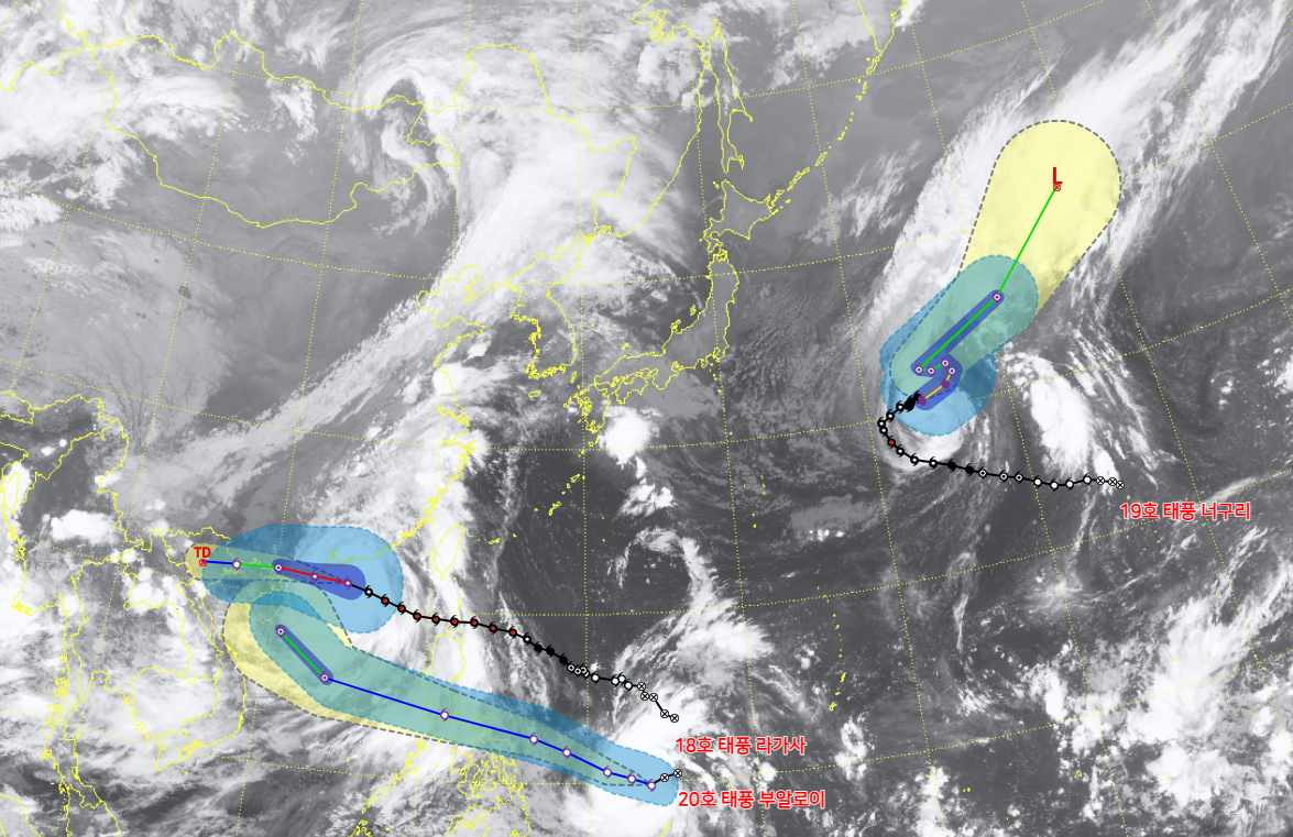 다행히 ‘라가사’는 서쪽으로, ‘너구리’는 동쪽으로 이동할 것으로 예상돼 우리나라에 직접적인 피해는 없겠습니다.