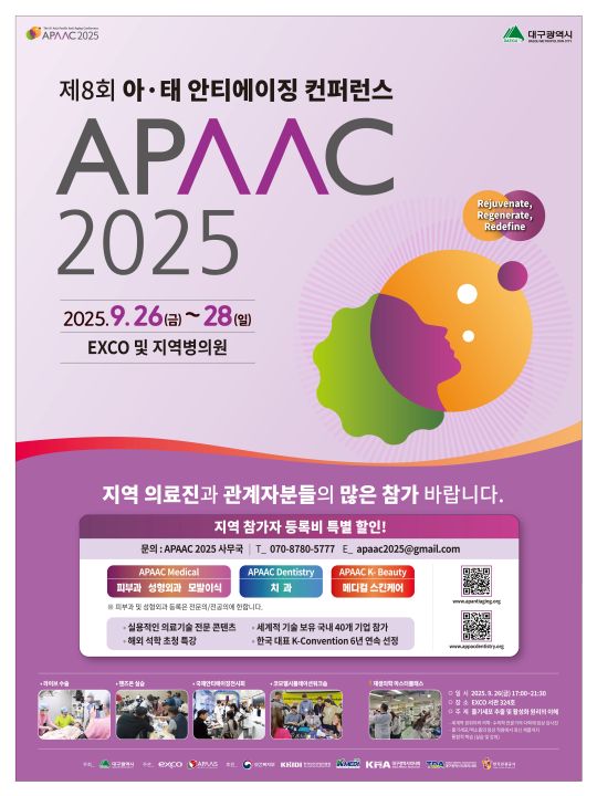 대구 엑스코와 대구경북첨단의료복합단지, 지역 병의원에서 열리는 이번 콘퍼런스는 국내외 750여 명의 항노화 분야 전문가와 기업인이 참가합니다.