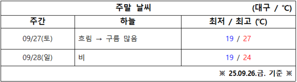 9월 4주 차 대구·경북 주말 ‘날씨 체크’