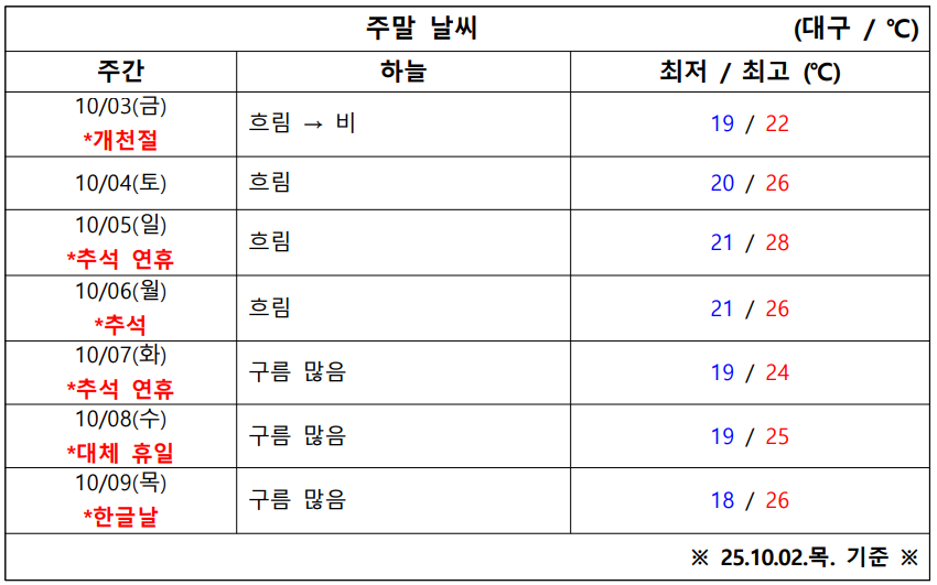 10월 1주 차 대구·경북 추석 ‘날씨 체크’