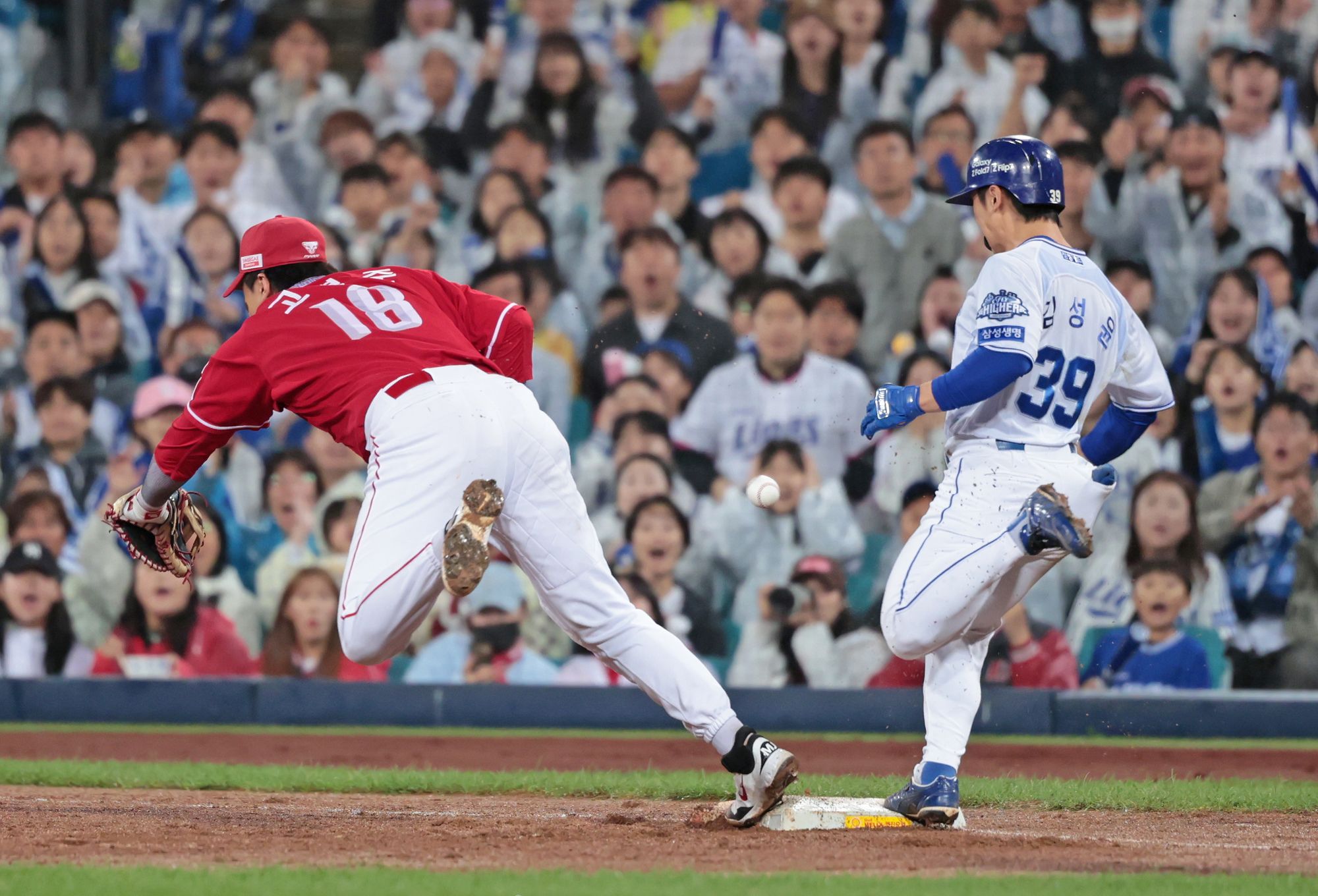 강민호의 볼넷으로 팀의 첫 출루에 성공한 3회 말, 삼성은 류지혁의 안타와 2사 1, 3루 상황에서 터진 김성윤의 내야 안타로 선취점에 성공했습니다.