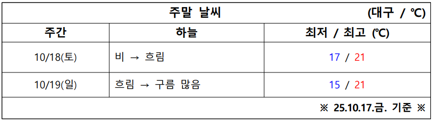 10월 2주 차 대구·경북 주말 ‘날씨 체크’
