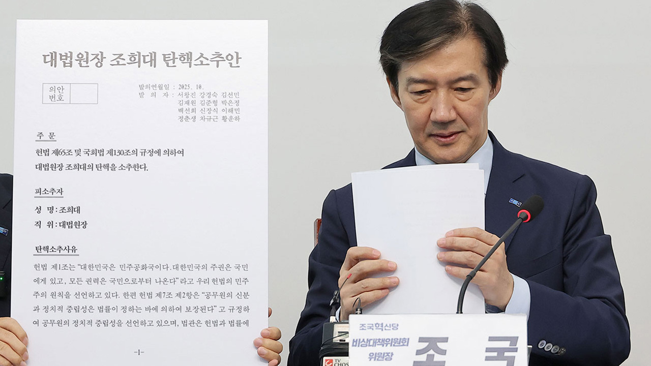 조국 조국혁신당 비상대책위원장이 조희대 대법원장에 대한 탄핵소추안을 공개했습니다.