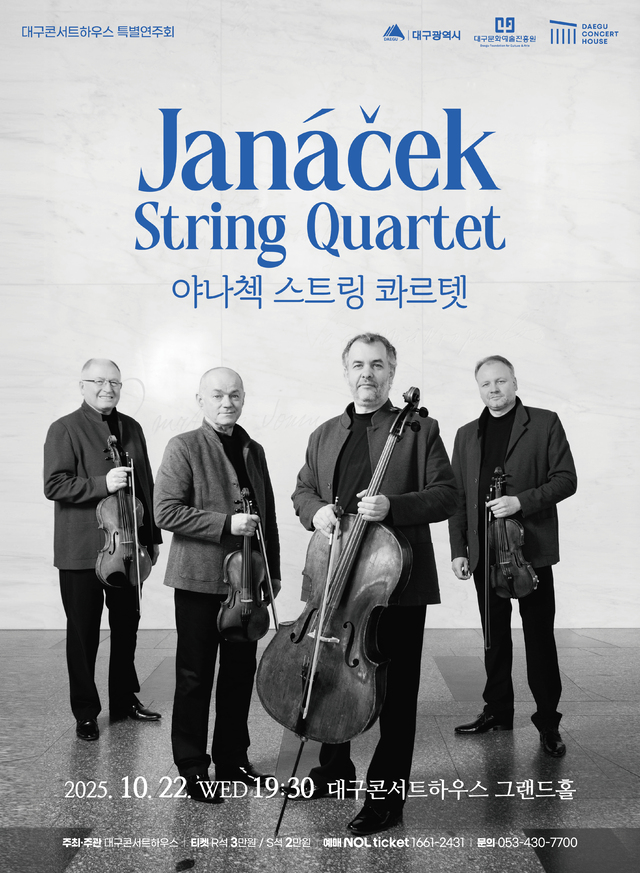 한국과 체코 수교 35주년을 맞아, 세계적인 현악4중주단 '야나첵 스트링 콰르텟(Janáček String Quartet)’의 내한 공연이 10월 22일 오후 7시 30분, 대구콘서트하우스 그랜드홀에서 열립니다.