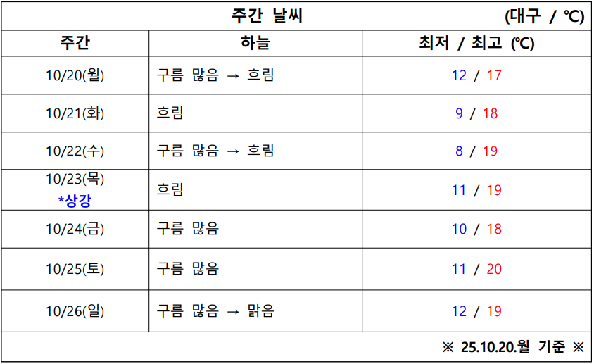 10월 3주 차 대구·경북 ‘날씨 체크’ 시작합니다.