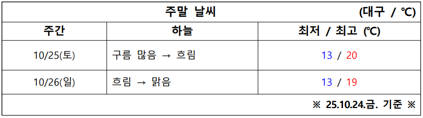 10월 3주 차 대구·경북 주말 ‘날씨 체크’