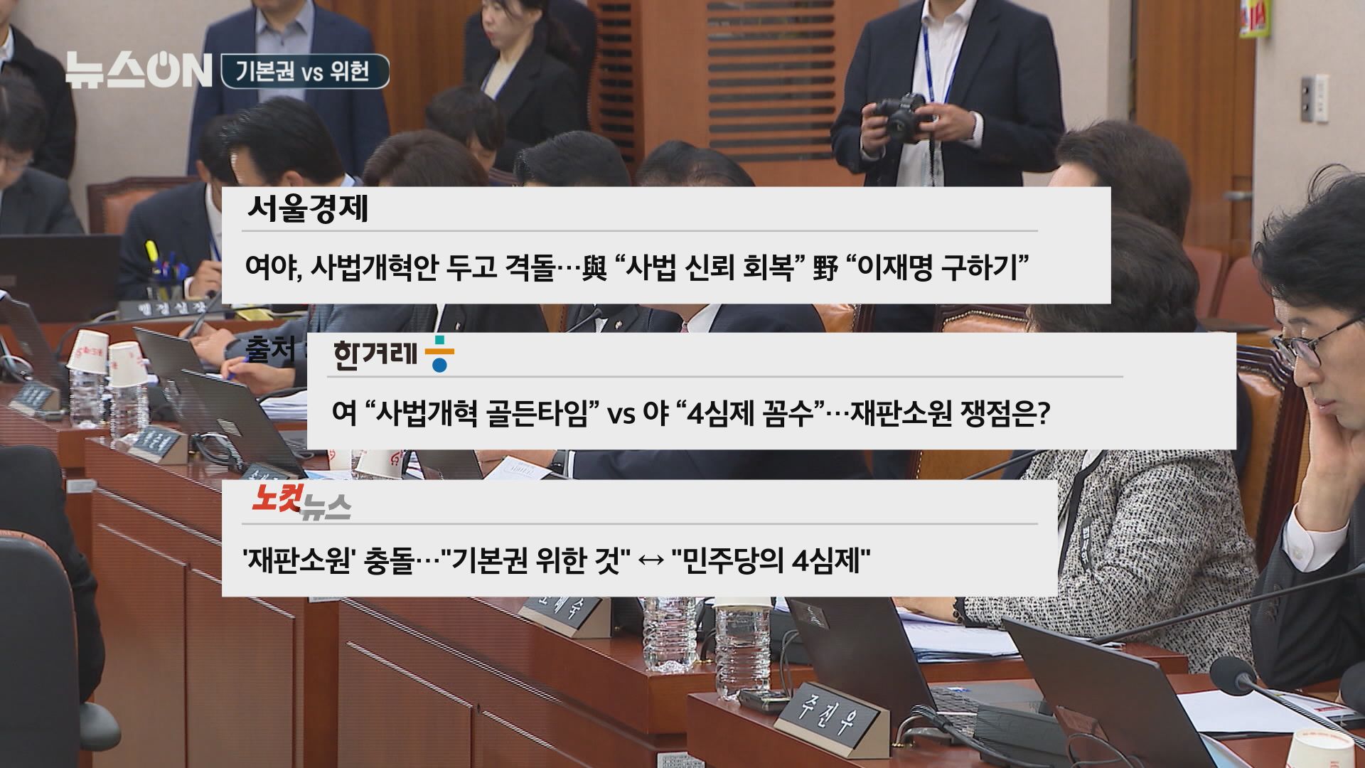 국민의힘은 '사법해체안'이라며 비판했습니다. 특히, 재판소원은 사실상 이재명 무죄를 위해서라는 겁니다.