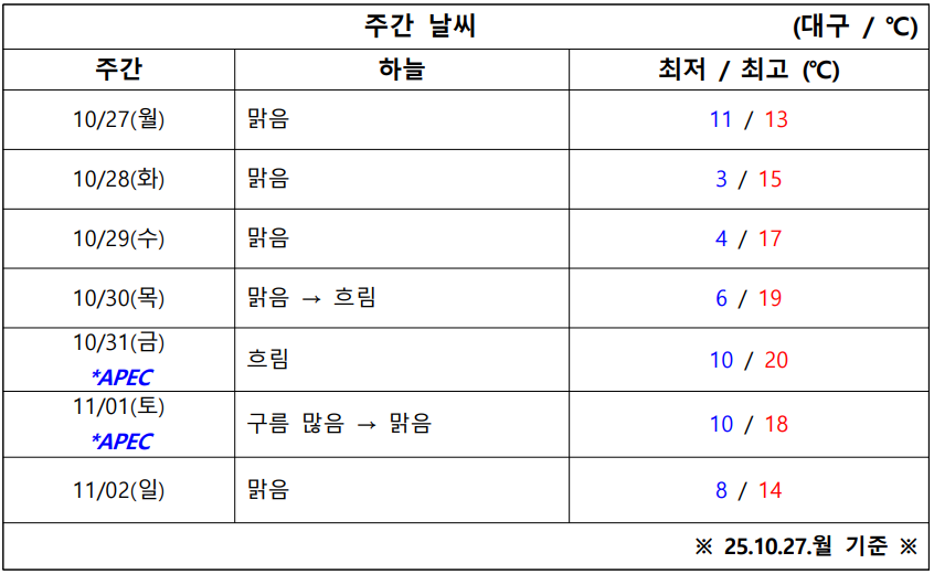 10월 4주 차 대구·경북 ‘날씨 체크’ 시작합니다.