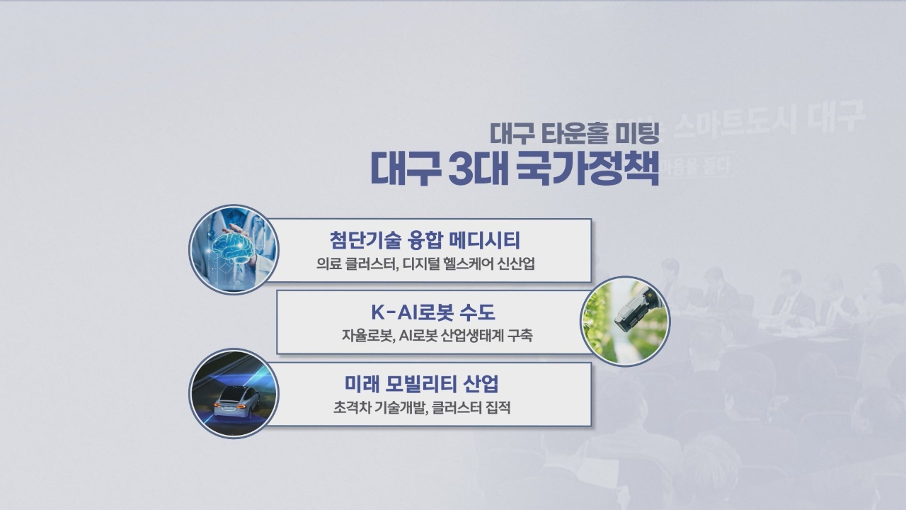 타운홀미팅에서 주요 국무위원들이 함께 참석해 대구 맞춤형 정책 3가지를 내놓았습니다.