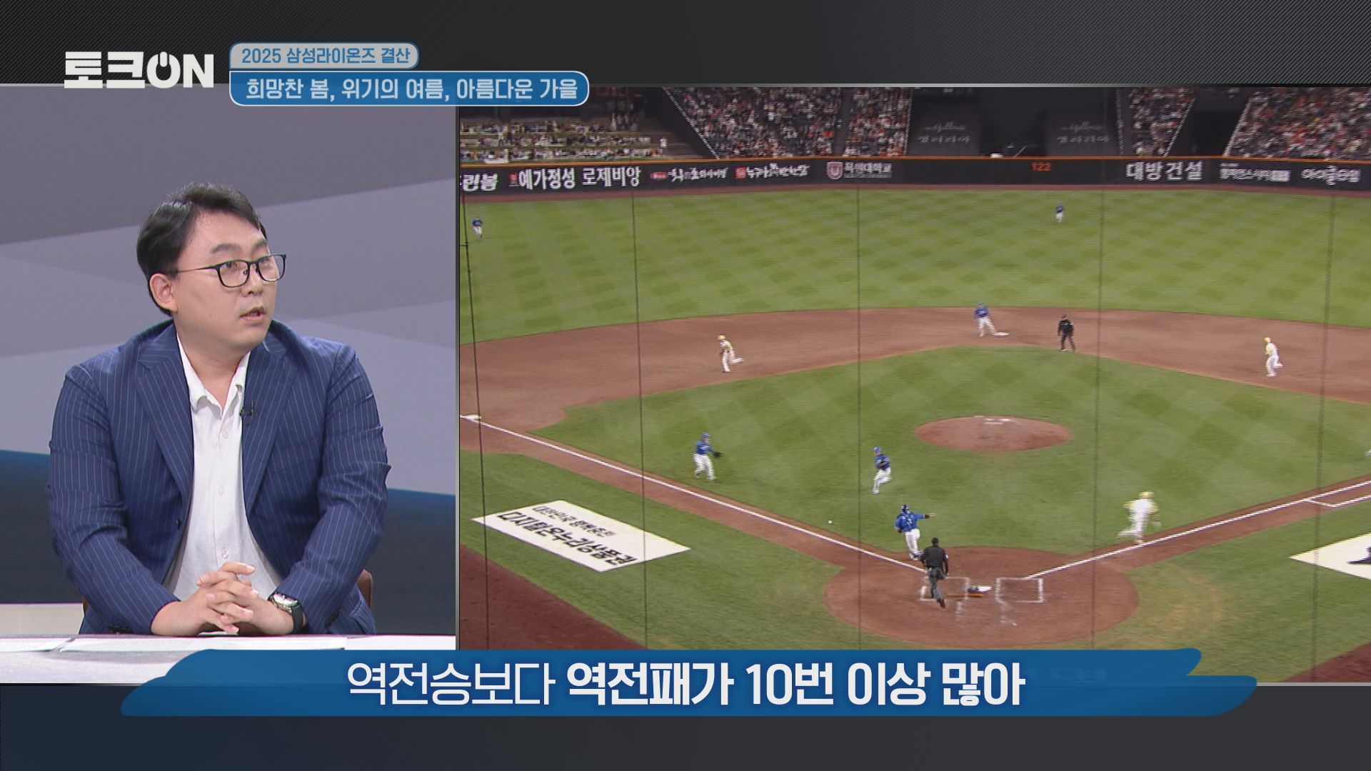 삼성라이온즈의 '가을 야구‘가 막을 내렸습니다. 삼성은 정규리그 4위라는 성과를 일구고, 플레이오프 5차전 끝에 시즌을 마무리했습니다. 한국시리즈에 진출한 2024 시즌보다는 아쉬운 성적이지만, 전반기 8위의 부진을 딛고 포스트시즌 진출 후 11경기나 치르면서 사자군단의 저력을 보여주었습니다. <토크ON>은 2025 삼성라이온즈 정규 시즌과 가을야구까지의 여정을 되돌아보는 시간 마련했습니다.