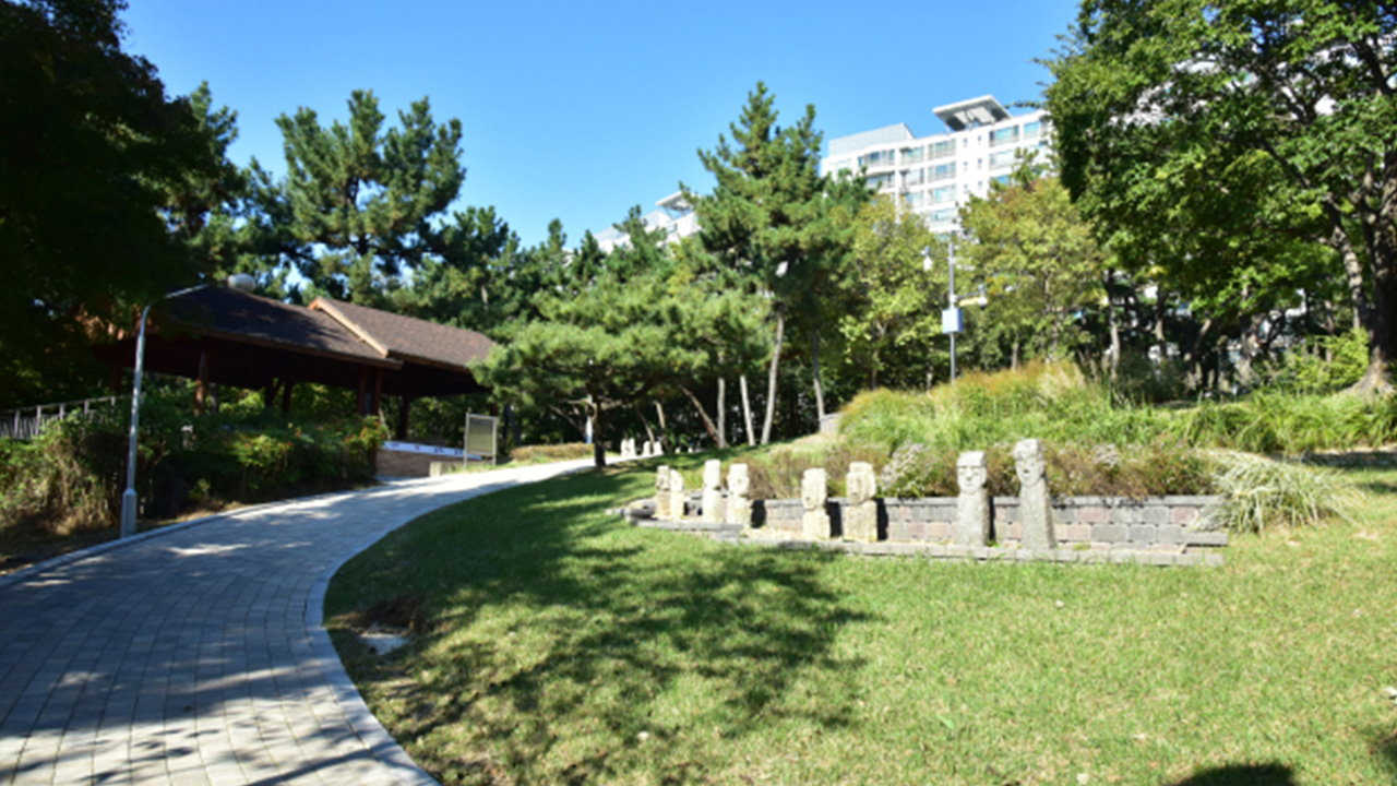산책로를 따라 조성된 '해담길', '월담길', '별담길'에는 높이 6m에 이르는 오층 석탑을 비롯해 효자 이종형 정려문, 고려시대 석조여래좌상과 같은 다양한 석조물과 함께 석인상들을 배치했습니다.
