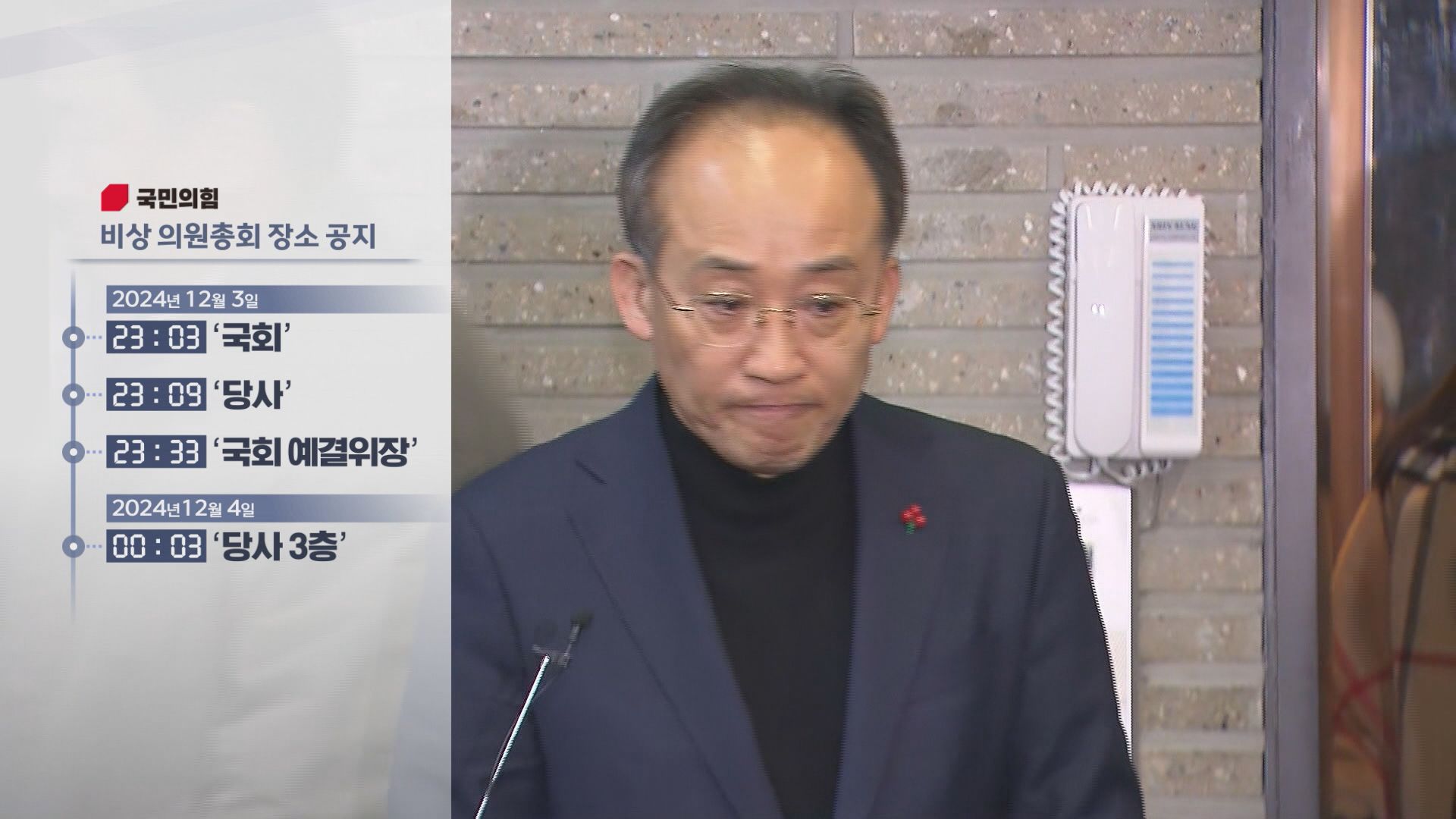 2024년 12월 3일, 추경호 전 국민의힘 원내대표는 계엄이 선포된 이후 비상 의원 총회를 소집했는데요. 국회 본관 예결위 회의장에서 국민의힘 당사, 다시 국회, 다시 당사로 공지했습니다.