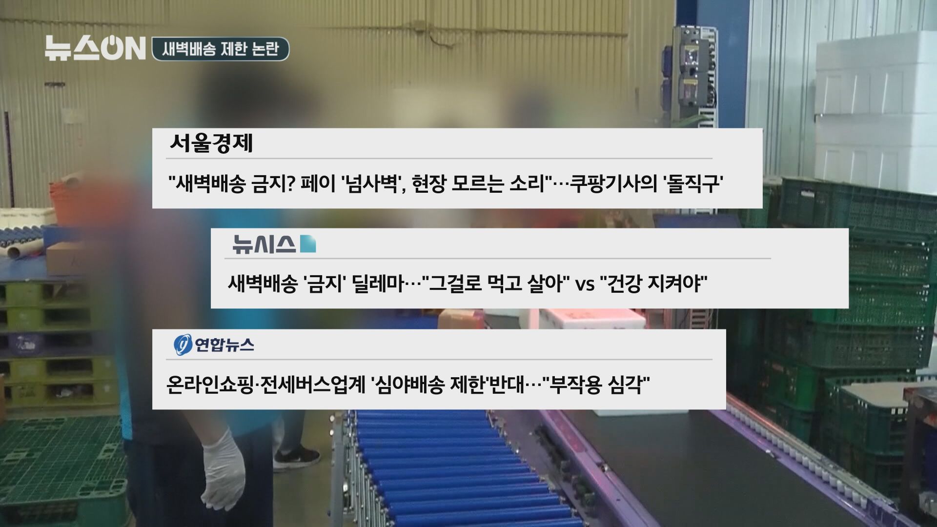 노동자 본인의 선택도 맞고, 직업 선택의 자유도 있습니다만 어쨌든 문제가 생기는 부분에 대해서는 대안은 필요해 보이는 대목인데요. 새벽 금지 금지라는 표현은 극단적입니다만, 이 극단적인 표현에만 몰두해서 찬성, 반대로 에너지를 소모할 게 아니라요. 근무 환경을 개선하면서 소비자도 편리한 방안을 찾는 더 발전적인 '방법'을 찾는 계기가 되었으면 좋겠습니다.