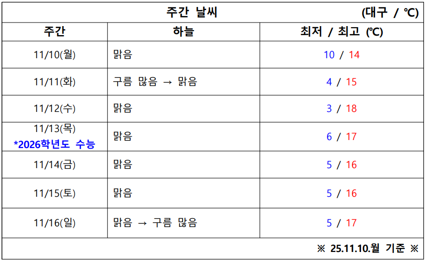 11월 2주 차 대구·경북 ‘날씨 체크’ 시작합니다.