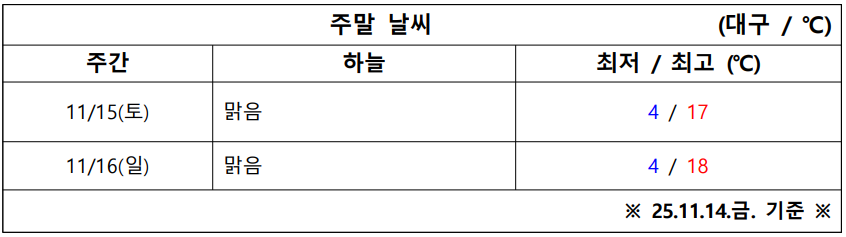 11월 2주 차 대구·경북 주말 ‘날씨 체크’