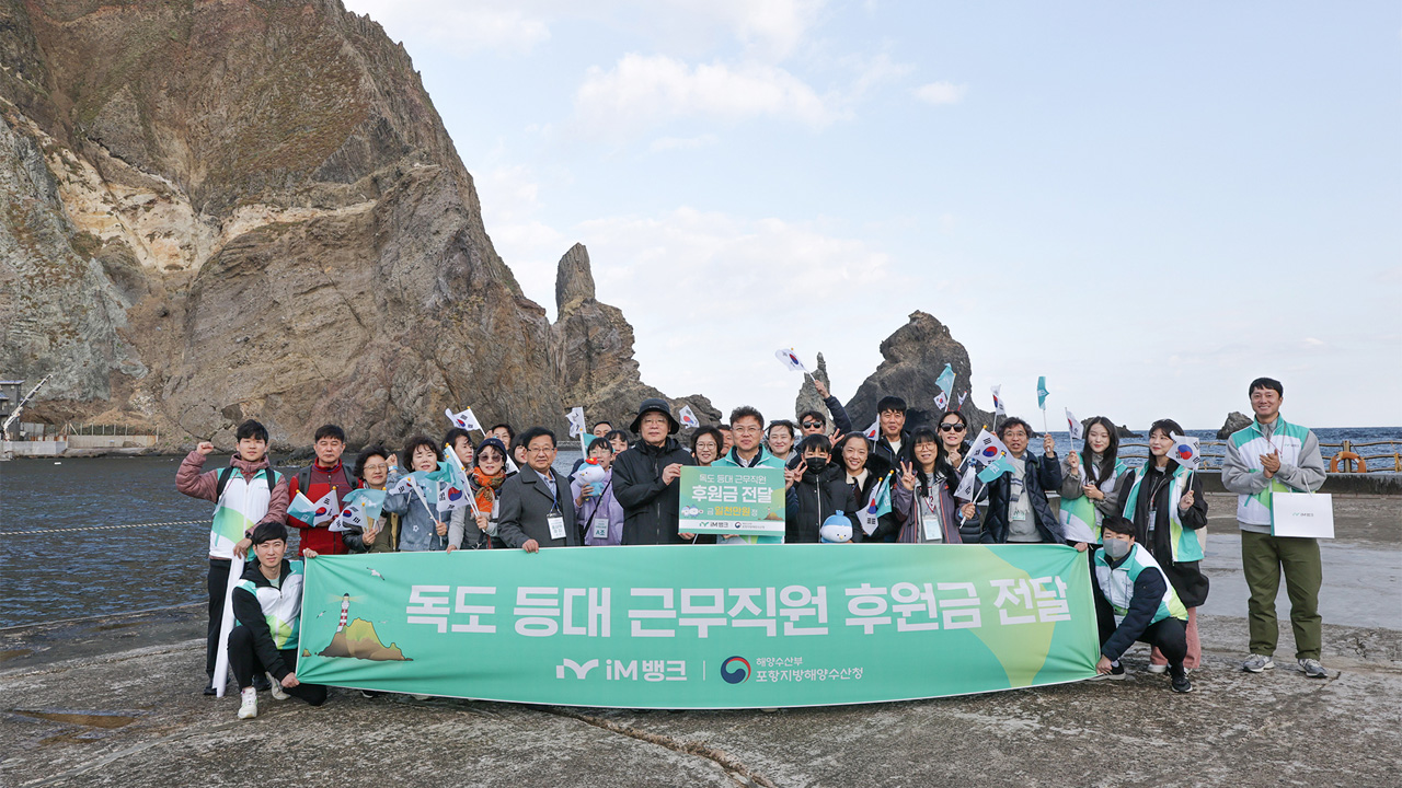 iM뱅크의 독도 사랑 활동은 2001년 국내 최초 사이버 독도 지점 개점을 시작으로 꾸준히 이어져 왔으며, 이후 2009년 포항지방해양수산청과 '독도 사랑 자매결연 협약한 데 이어, 2010년대부터는 고객과 함께하는 독도 탐방, 독도 사랑 골든벨, 독도 등대 및 경비대 후원금 전달 등 다양한 형태로 독도 수호 활동을 지속해 왔습니다.