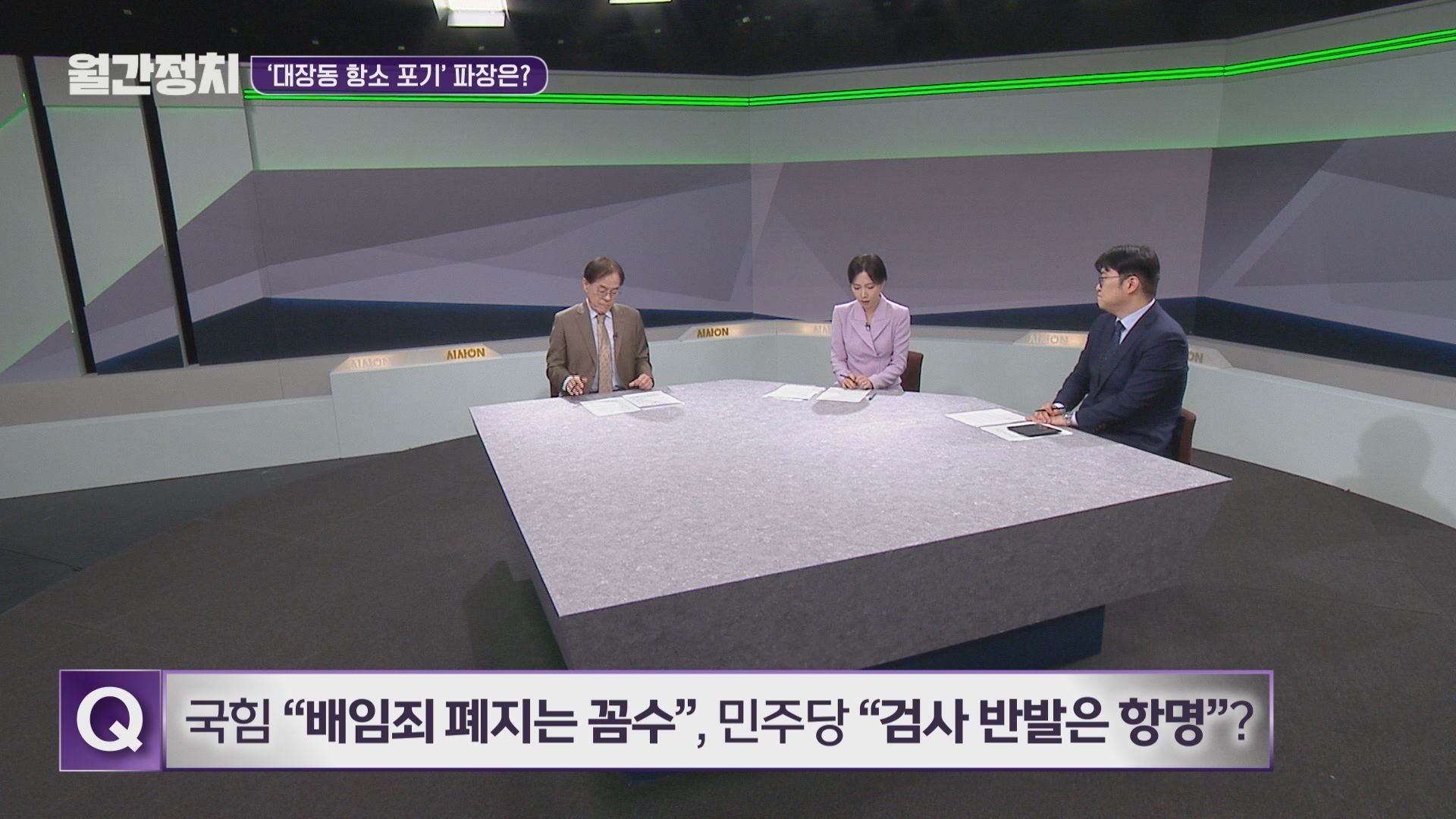배임죄 폐지는 강 변호사님 말씀하신 대로 일반 기업인들한테 적용될 때는 굉장히 가혹한 범죄인 것은 분명합니다. 저도 개인적으로 폐지해야 한다고 봐요. 검사들이 수사하다가 안 되면은 별건 수사로 배임죄 막 이러거든요. 주로 회사의 이익에 반해서 무슨 행동을 했기 때문에 돈을 뭐 몇백만 원 빼갔다든가 이런 거잖아요. 그것 좀 폐지될 필요가 있지만 지금 이 대장동 사건에서 폐임죄 폐지는 준국가기관과 결탁된 배임죄예요. 이거를 지금 우리가 쉽게 여기서 포기한다는 건 좀 생각해 볼 문제죠.