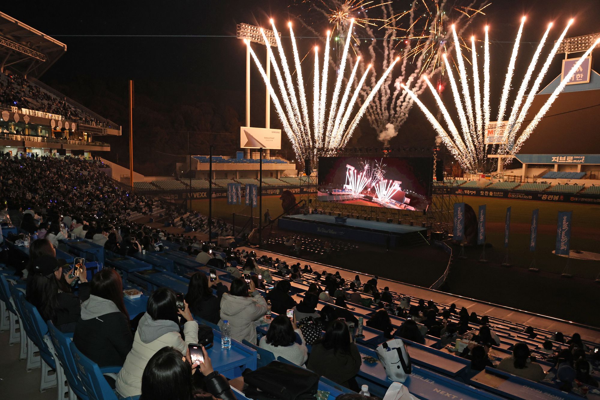 선수단의 토크쇼와 팀 대항 미니게임, 선수들의 장기자랑과 축하공연에 이어 불꽃놀이로 마무리된 이 행사는 비교적 쌀쌀해진 날씨에도 뜨거운 열기 속 펼쳐졌습니다.