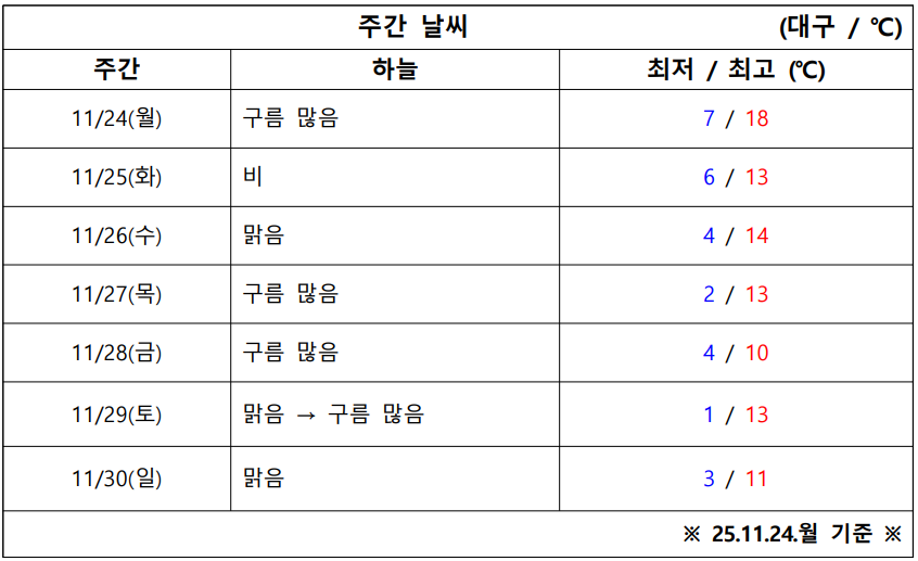 11월 4주 차 대구·경북 ‘날씨 체크’ 시작합니다.