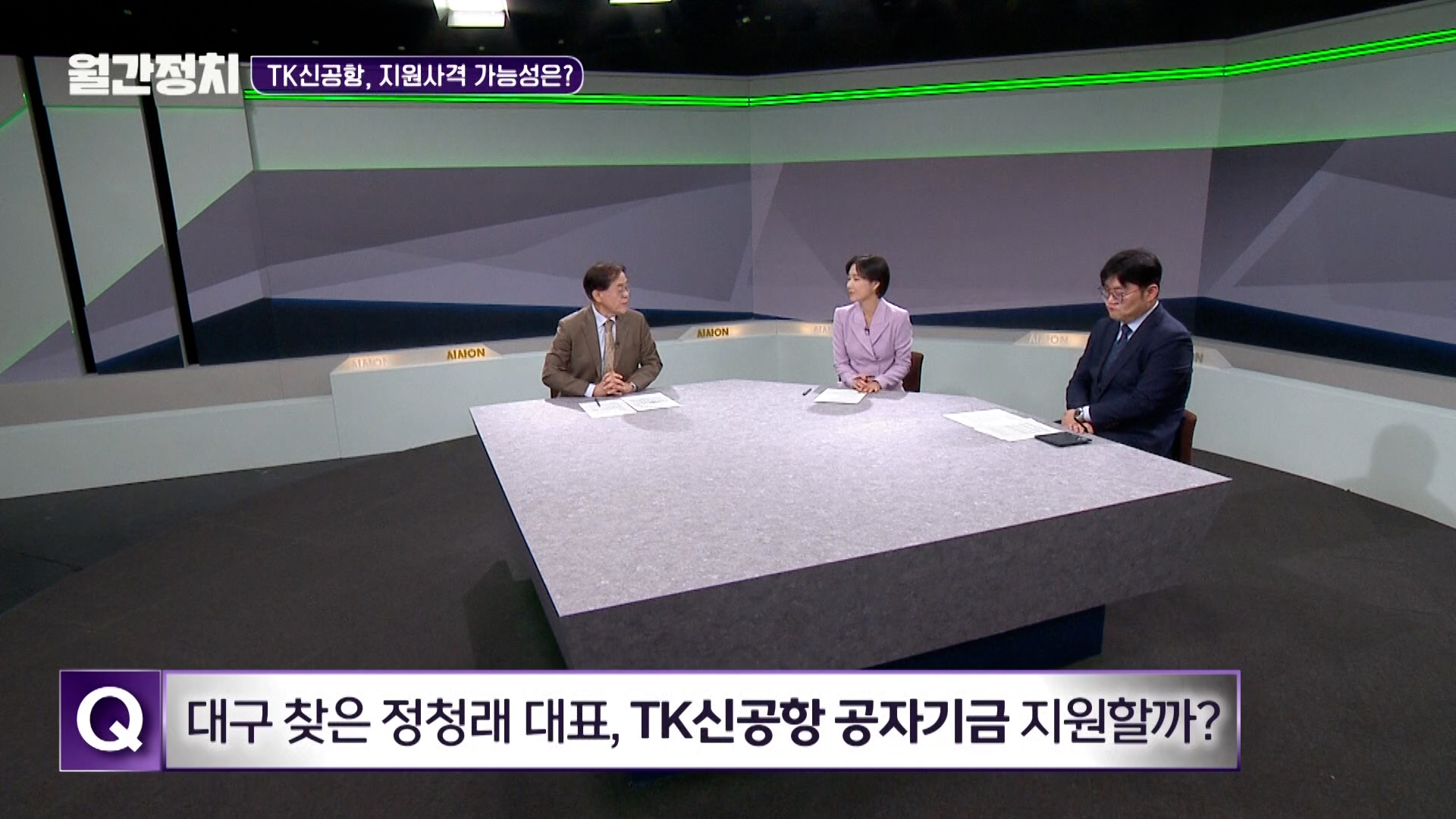 지역 핵심 사업인 TK 신공항이 재정 조달 문제로 표류하고 있습니다. 지난 10월, 이재명 대통령의 대구 타운홀 미팅 때 국비 지원 가능성이 시사되었지만, 올해 말까지 예산을 확보하지 못하면 사업 진행은 사실상 어렵다는 전망이 많습니다. 이와 함께 최근 대구를 찾은 정청래 대표가 TK 신공항 관련한 공자기금 반영을 적극적으로 검토하겠다고 밝히면서 공회전 하던 공항 문제가 새로운 동력을 얻을 수 있을지 귀추가 주목되고 있습니다. 오늘 <월간정치>는 TK 신공항의 여당 지원사격 가능성과 내년 지방선거를 앞둔 대구의 정치권 상황을 토론합니다.
