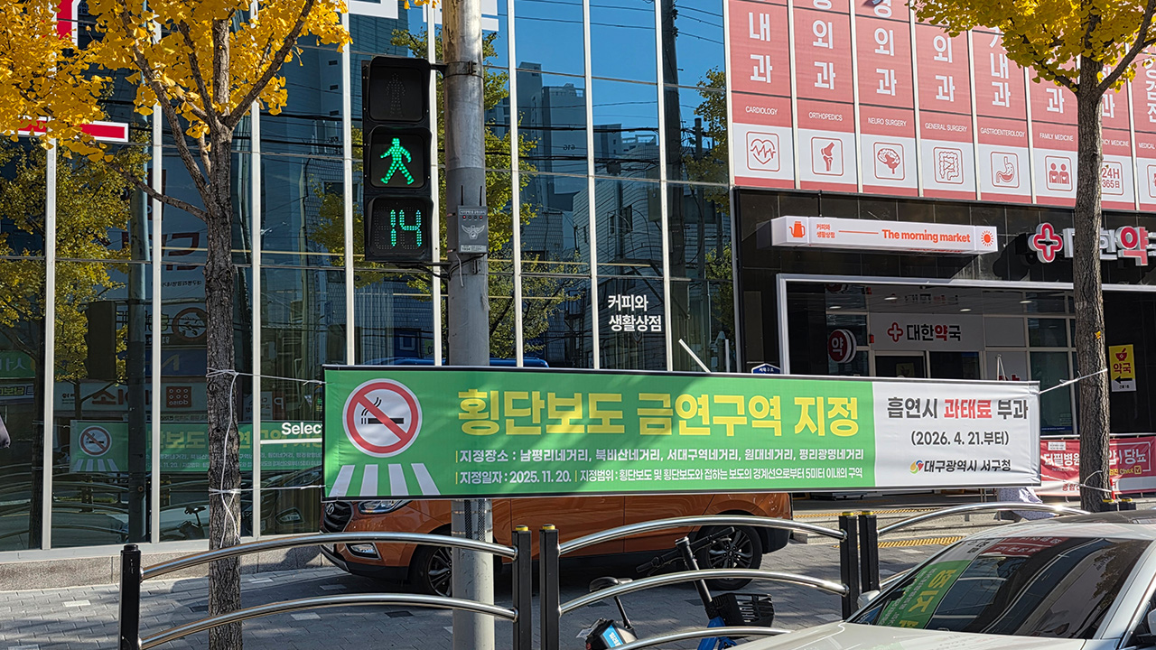 대구 서구가 흡연 민원이 많고 주민 통행이 많은 횡단보도 5곳을 금연 구역으로 지정했습니다.