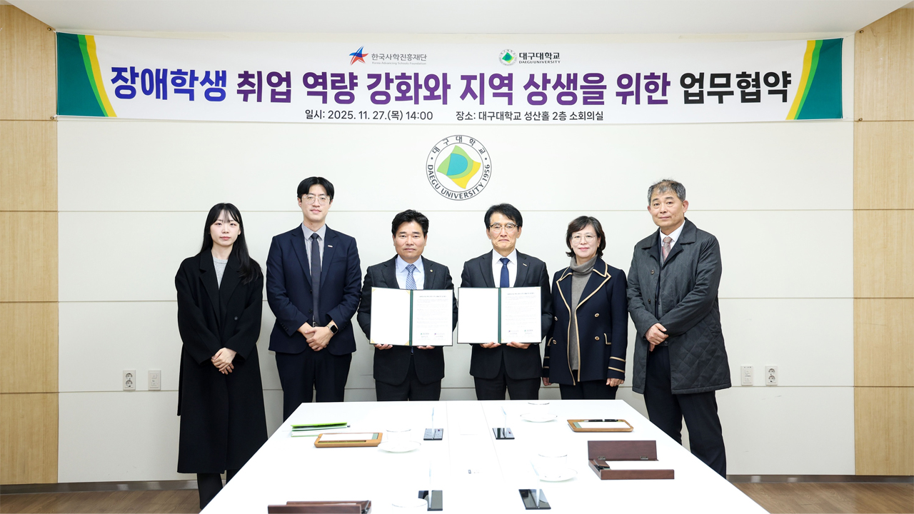 대구대학교는 한국사학진흥재단과 장애 학생 취업을 위한 업무협약을 체결했습니다.