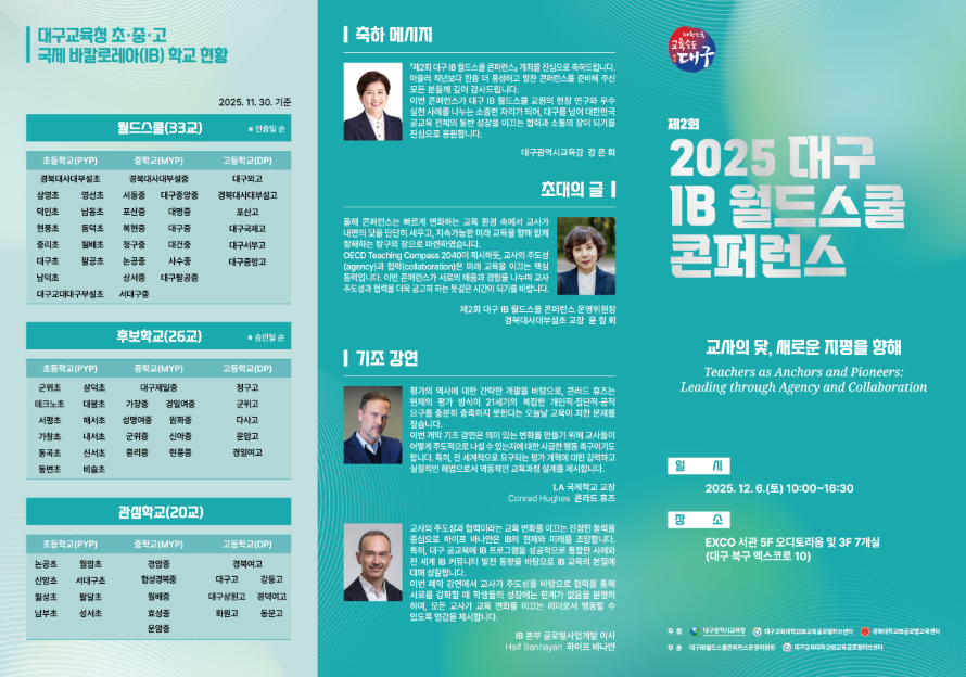 12월 6일 대구 엑스코에서 제2회 대구 IB 월드스쿨 콘퍼런스가 열립니다.
