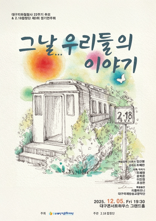 12월 5일 저녁 7시 30분 대구콘서트하우스에서 대구 지하철 참사 22주기를 추모하는 2·18 합창단의 정기연주회가 열립니다.