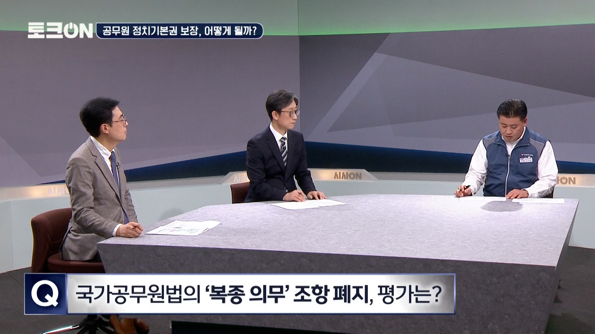 11월 25일 정부가 공무원법상 공무원 ‘복종의무’ 폐지를 발표했습니다. 국가공무원법상 공무원의 '복종의 의무'를 규정한 조항이 76년 만에 삭제되는 것입니다. 이와 함께 공무원과 교사들의 '정치기본권 보장' 논의도 활발해지고 있습니다. 공무원과 교사도 '시민'으로서 자유로운 의사 표현과 정치적 권리를 보장해달라는 요구입니다. 오늘 <토크 ON>은 공무원 '복종 의무' 폐지와 함께 강조되고 있는 공무원의 정치 기본권은 앞으로 어떤 결정이 필요한지 논의합니다.