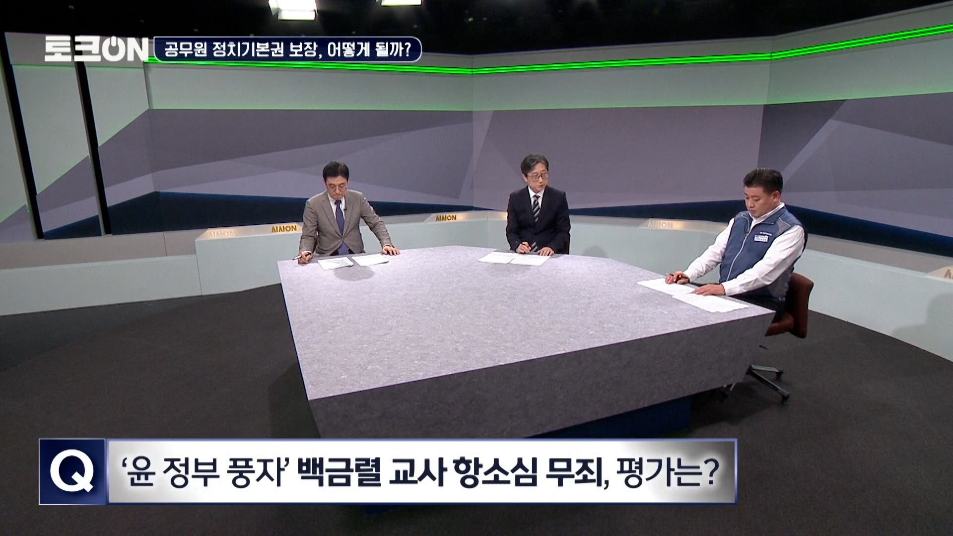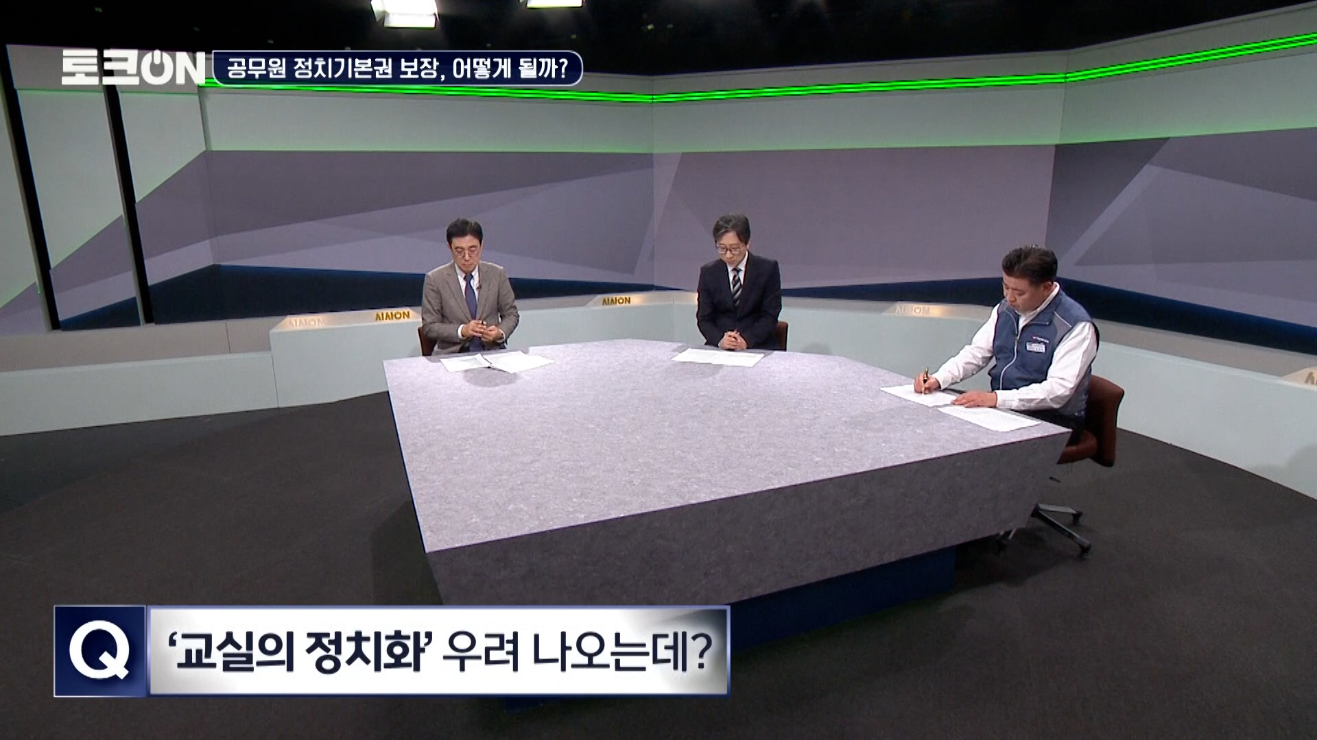 오늘 ‘토크ON: 공무원과 교사의 정치 기본권 보장’ 주제로 성중탁 교수님, 김규환 본부장님 모시고 이야기 나눴습니다. 두 분의 좋은 말씀 감사드립니다. 오늘 토크ON 시간 마치겠습니다. 고맙습니다.