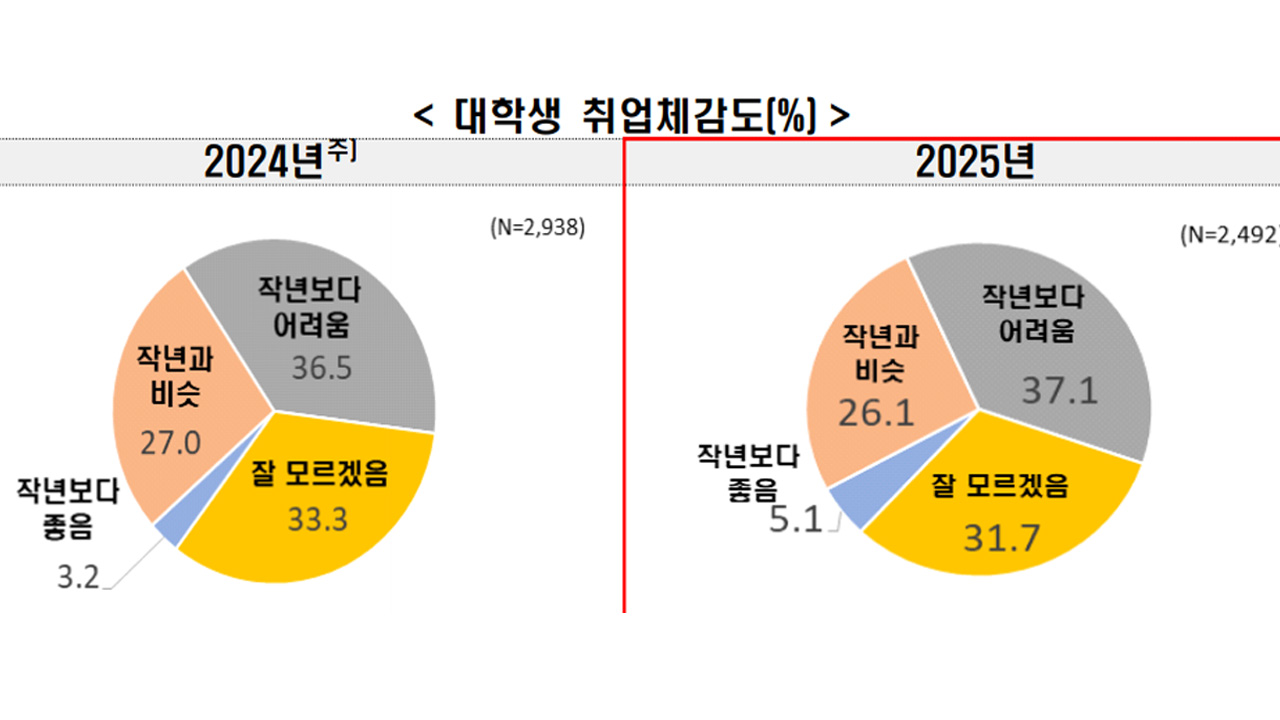 2025년 대졸 신규 채용 시장에 대한 대학생들의 인식은 부정적이었습니다.