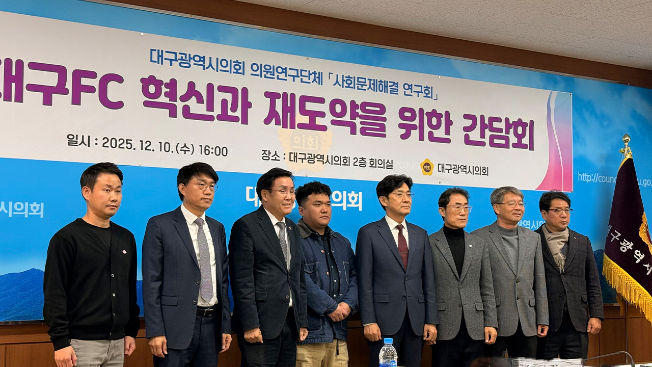 이어진 오후 4시부터는 대구시의회 2층 회의실에서 시의회 윤권근 의원이 주도한 '대구FC 혁신과 재도약을 위한 간담회'가 열렸습니다.