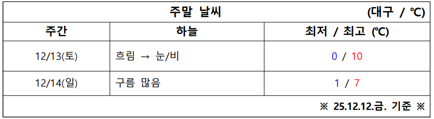 12월 2주 차 대구·경북 주말 ‘날씨 체크’