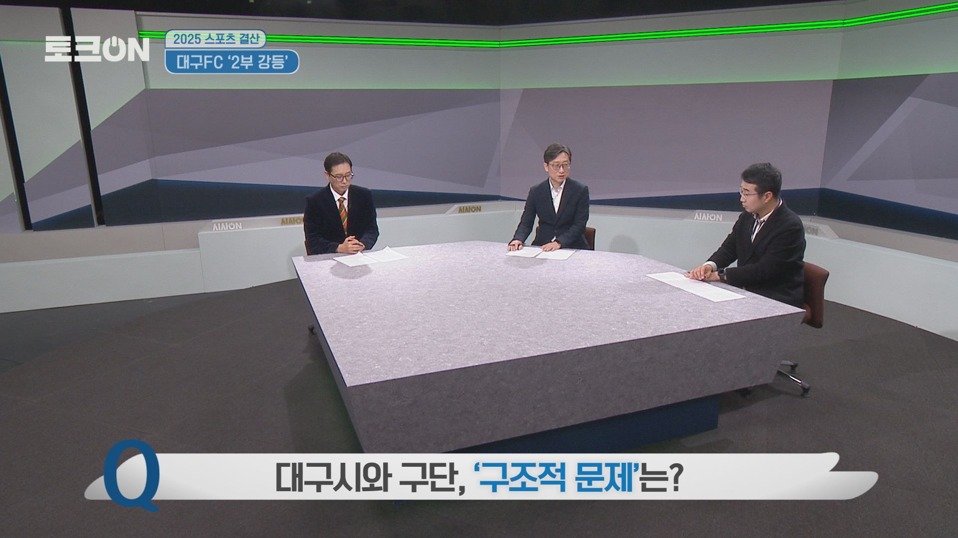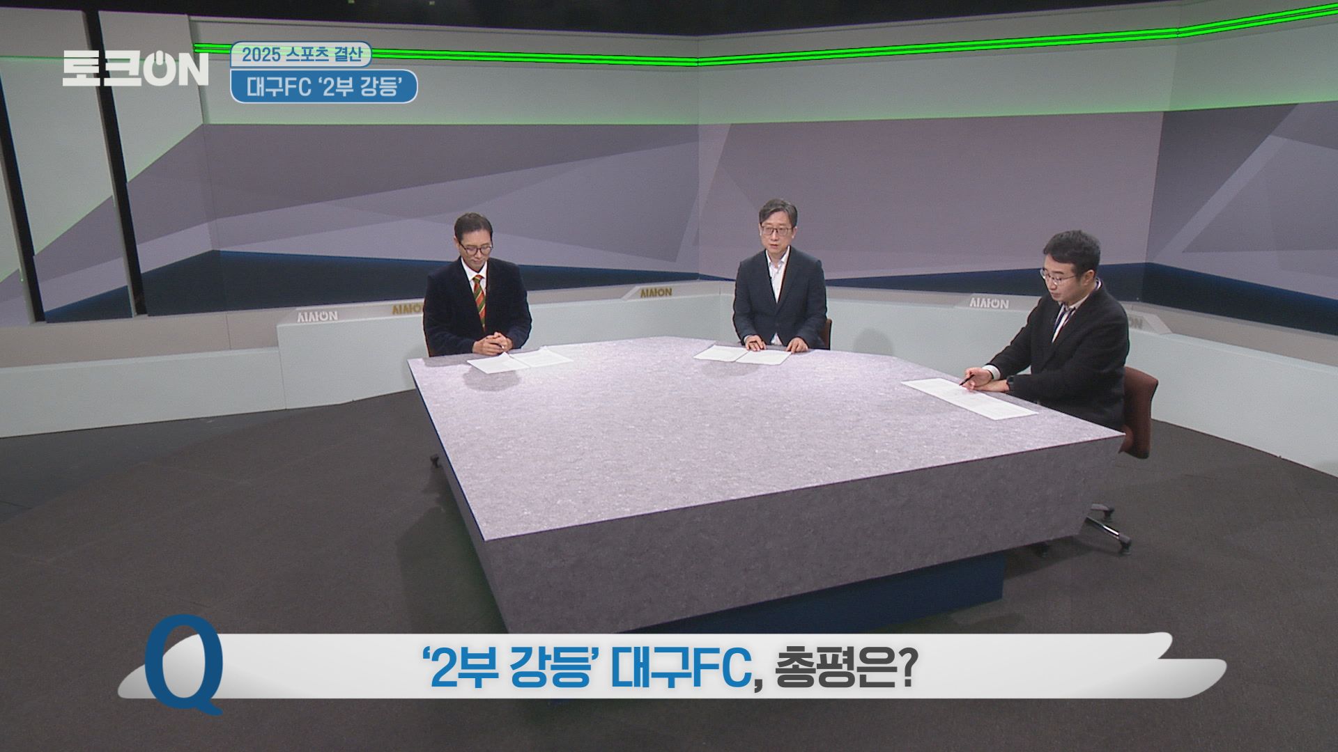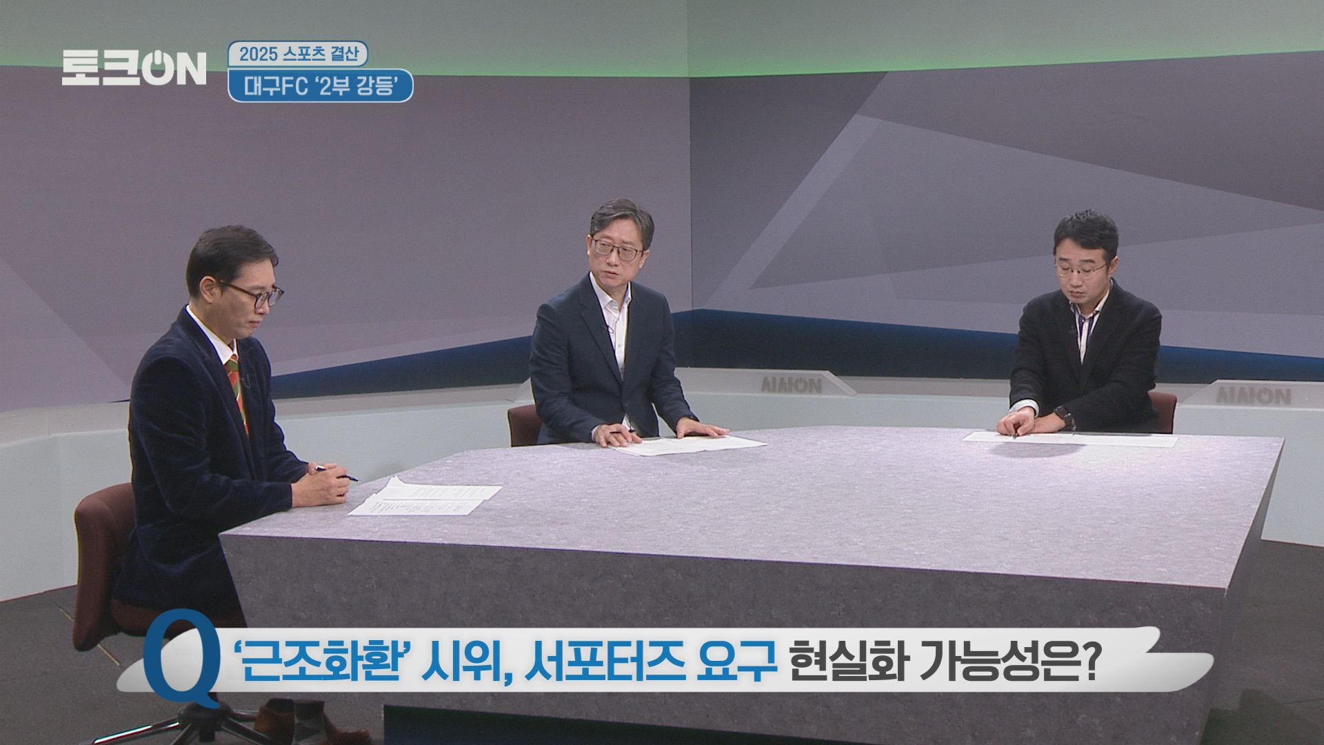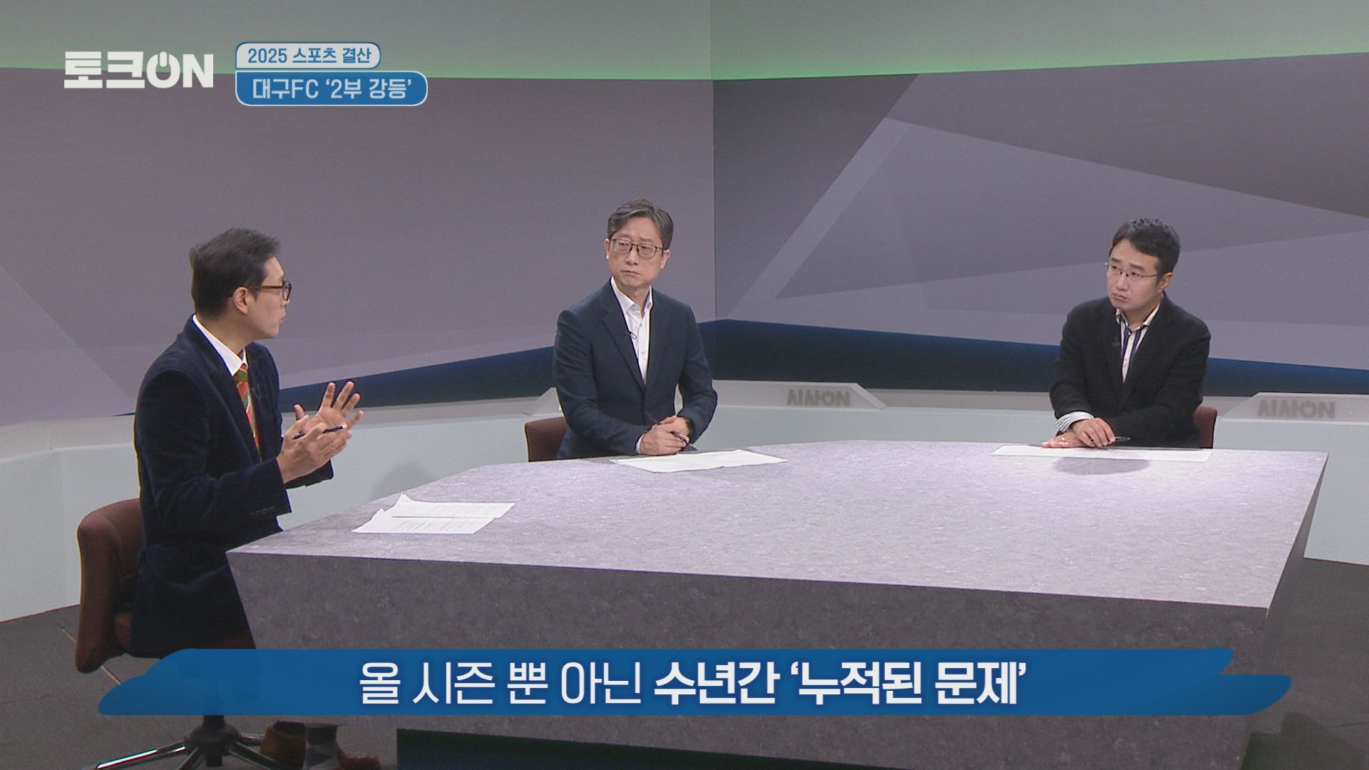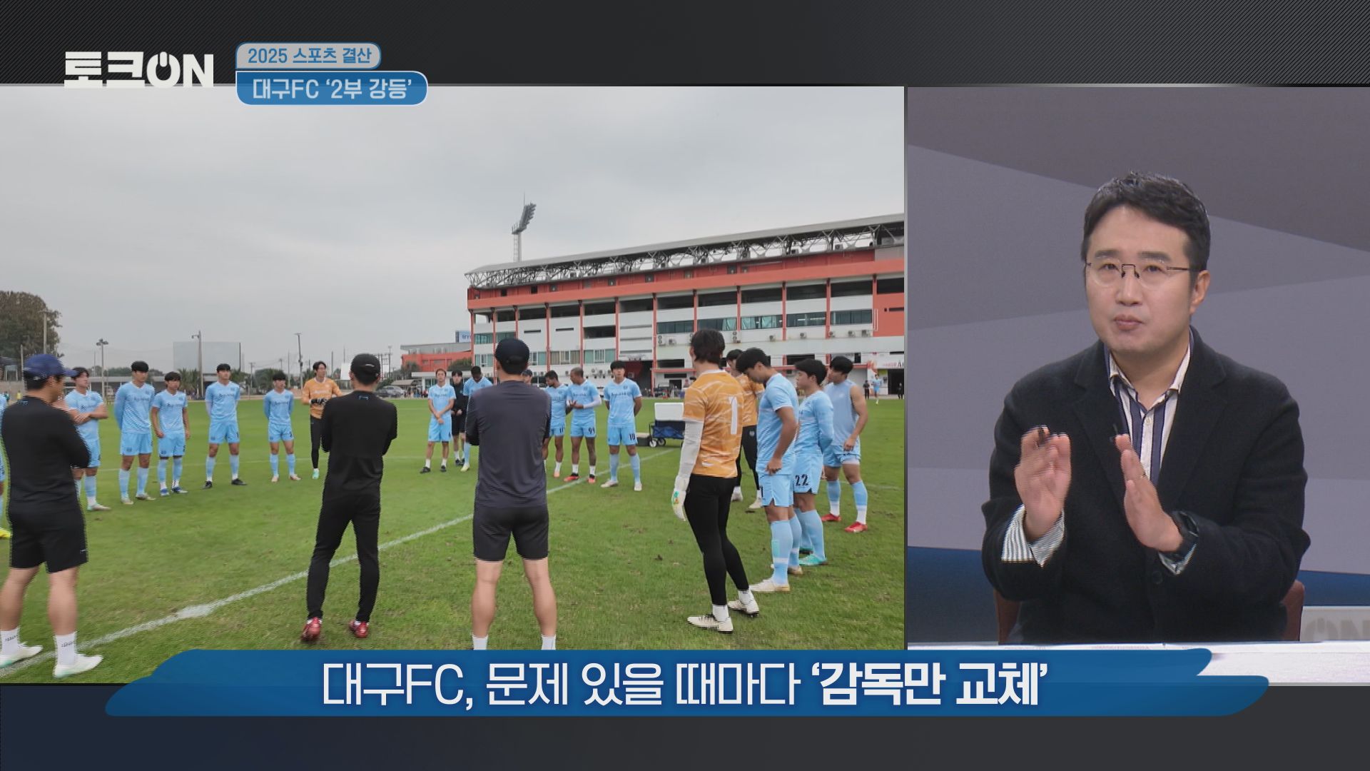 조금 어두운 얘기할 수밖에 없는 대구FC 얘기를 해 보겠습니다. 시민 구단인 대구FC가 2025년에 여러 가지 논란에 휩싸였습니다. 물론 여러 주체는 각자 할 말이 분명히 있을 것 같은데 먼저 이번 시즌 정리와 평가 먼저 석 기자 정리를 해 주시고 또 얘기를 나눠보죠.